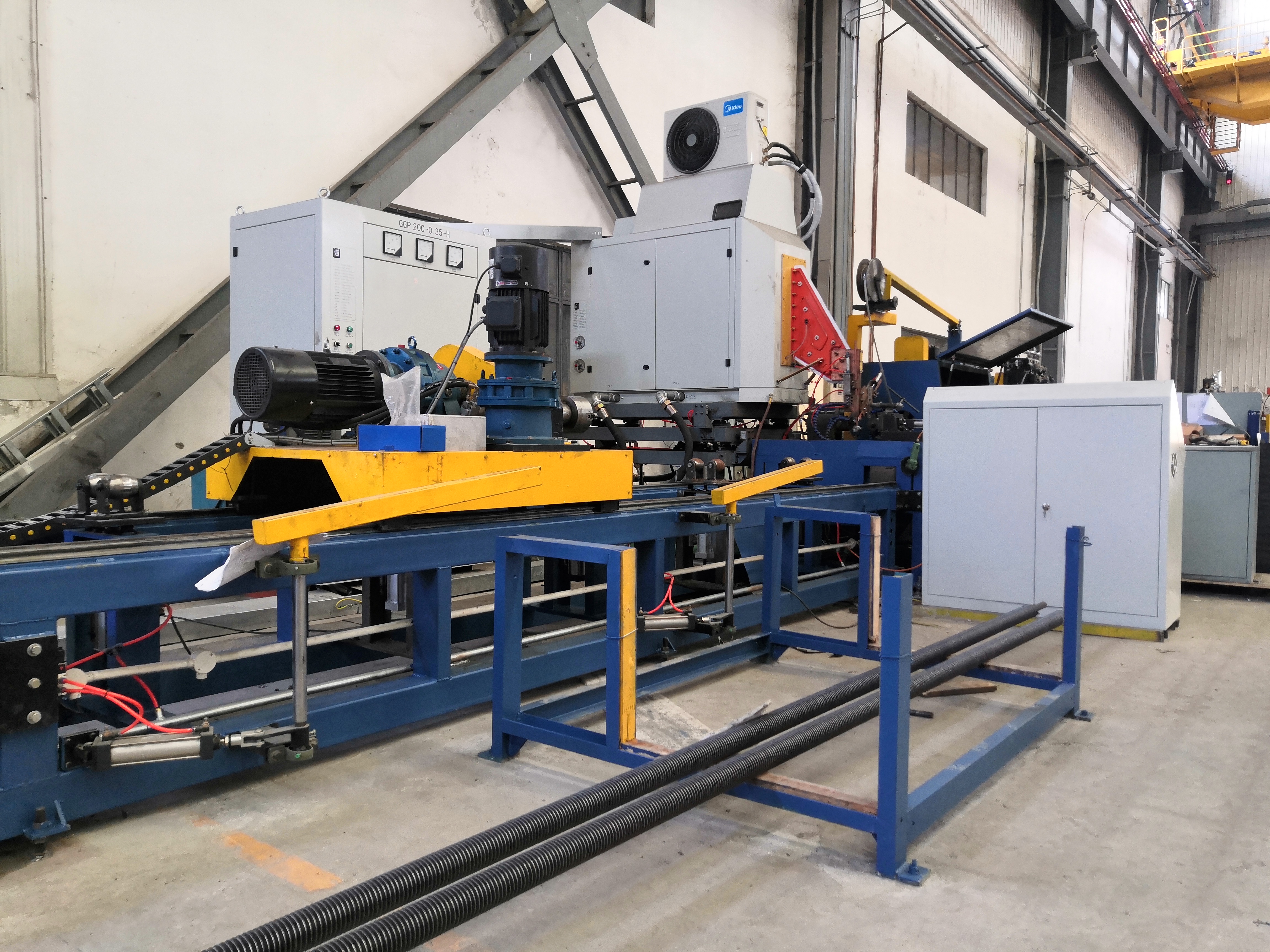 本生產線實現了鋼帶自動開卷、自動矯平、自動送帶、自動沖片、自動焊接整個全自動流程